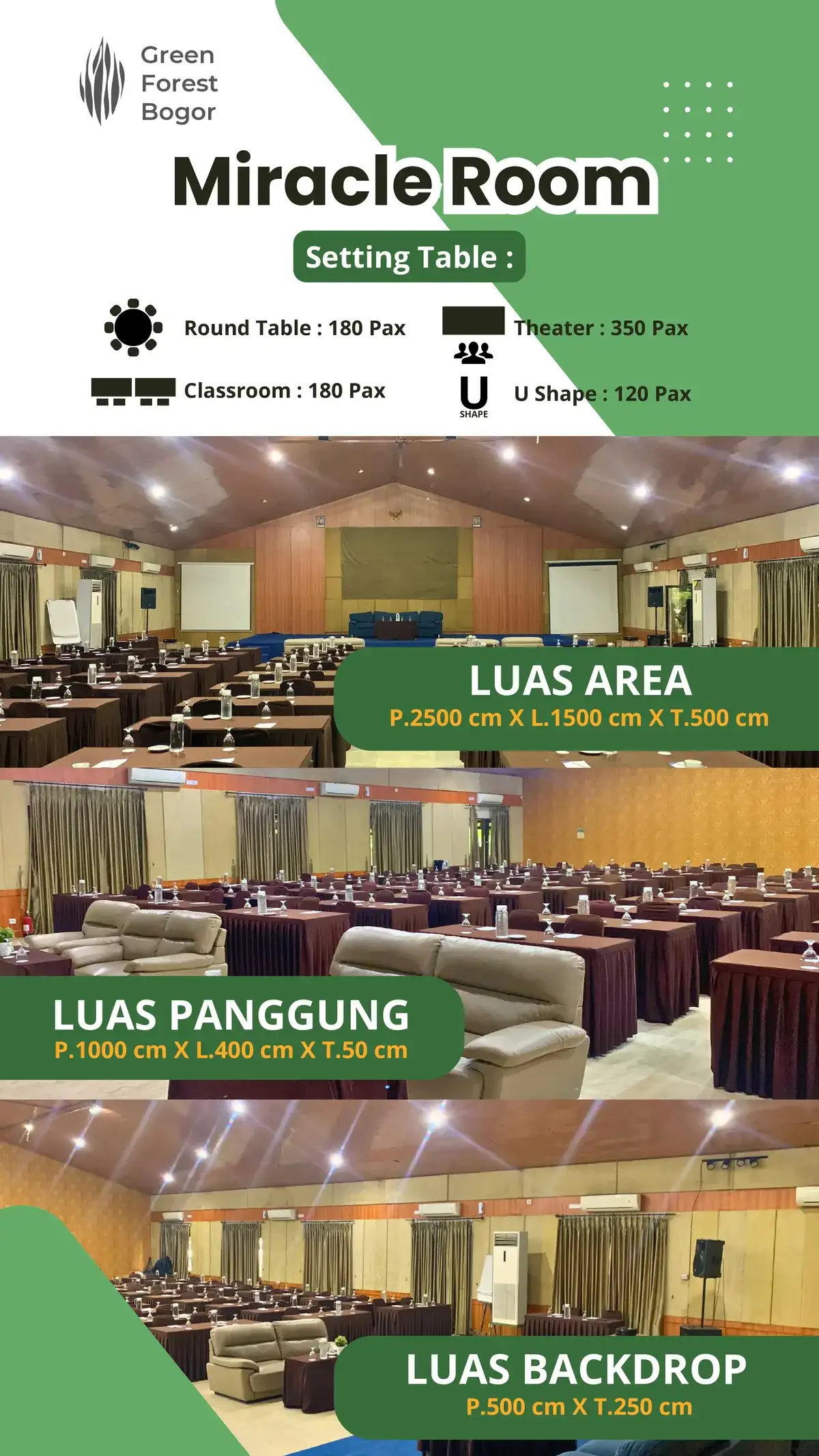 - podium Panggung P. 1000 cm × L. 400 cm × T. 50 cm